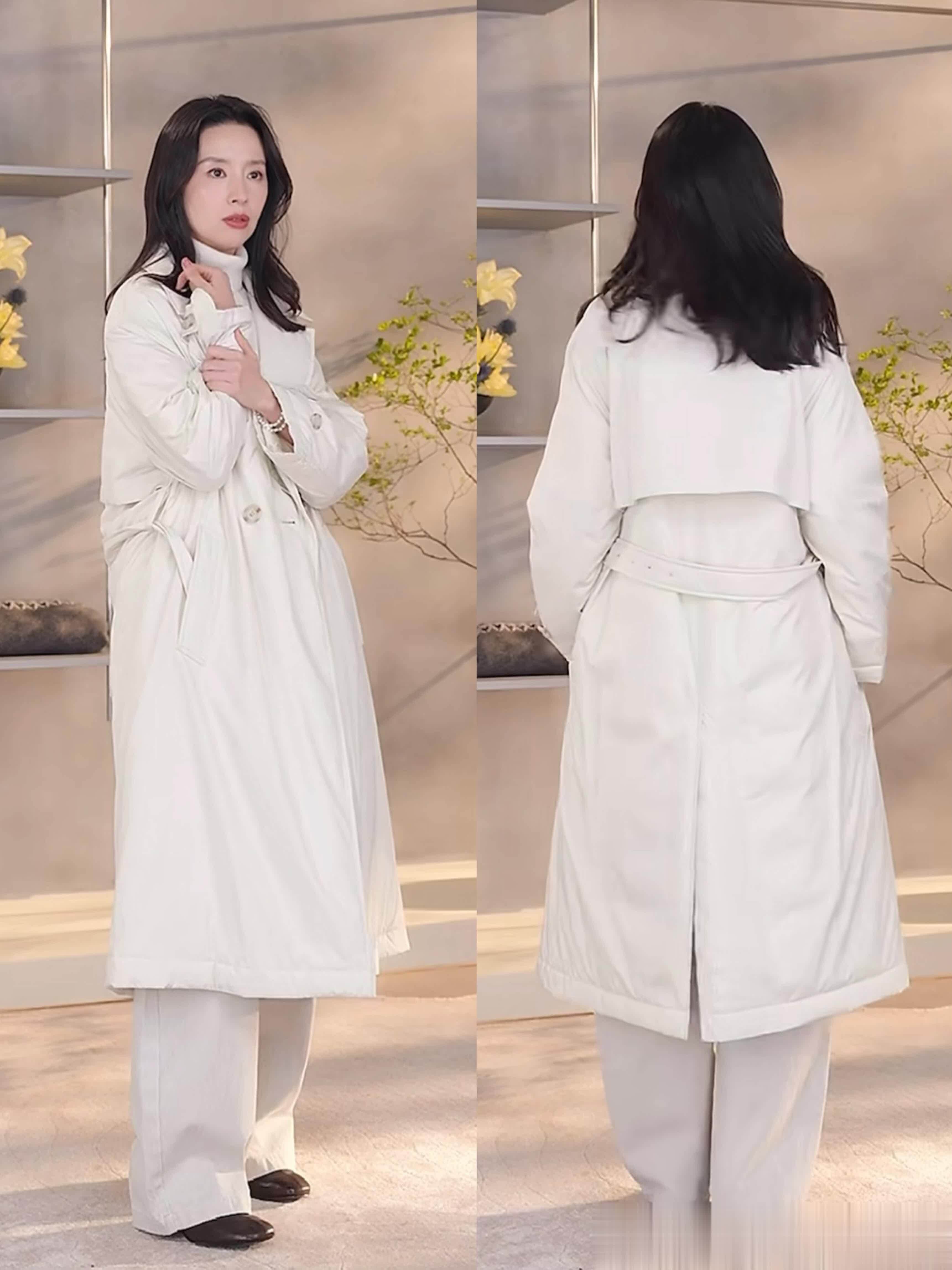 董洁秋冬穿搭太懂长期主义 风衣式羽绒服高级又耐穿 照着穿准没错