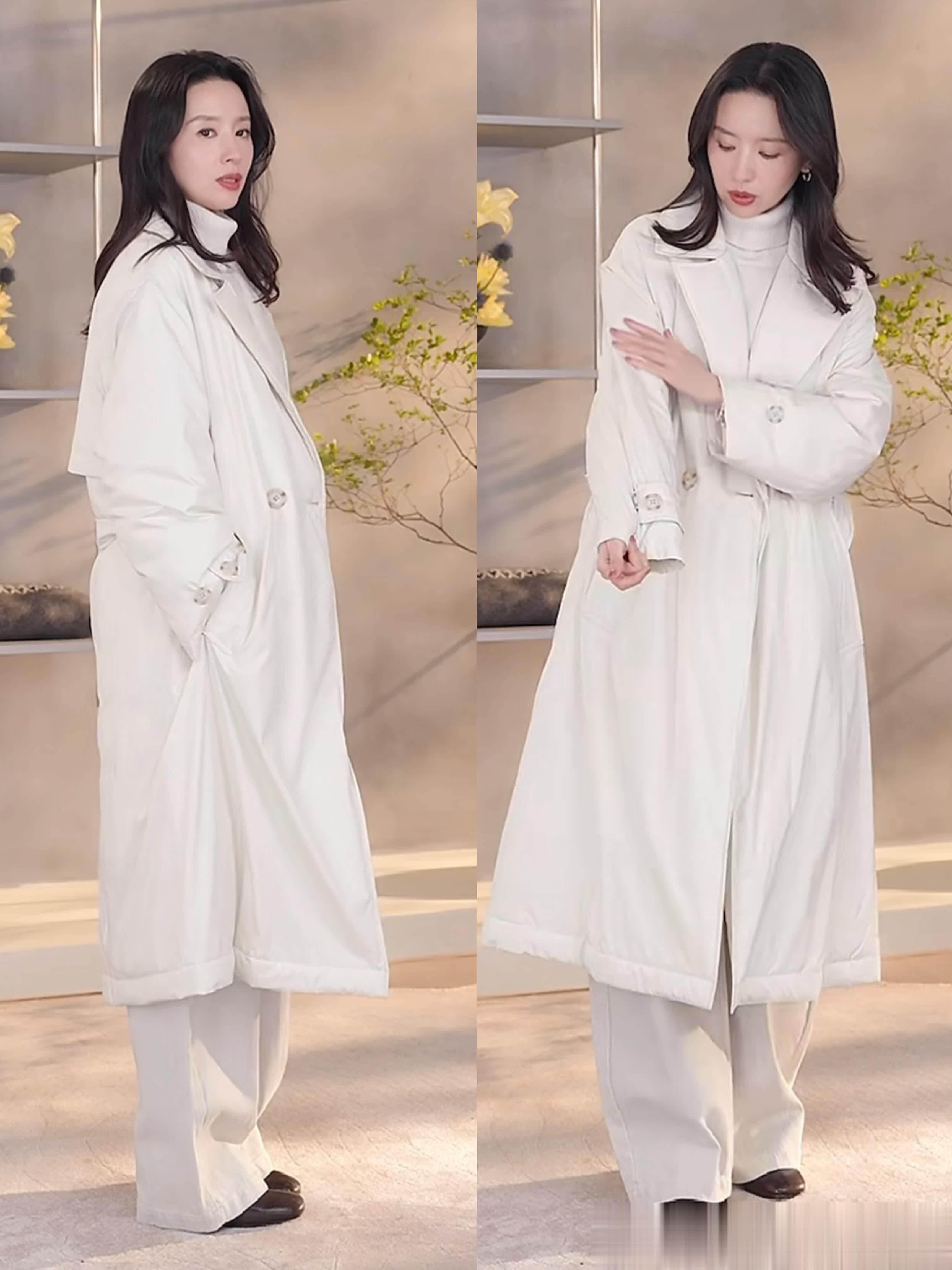 保暖和时髦的平衡,她也拿捏得恰到好处。这件羽绒服看着轻薄,实际填充得扎实,秋冬里面搭件薄打底就够抗风,不用裹成球也能暖洋洋。以前总觉得“羽绒服想保暖就得牺牲好看”,看了她的搭配才发现,选对版型比啥都重要:利落的线条能藏住臃肿,柔和的颜色能提升质感,哪怕是冬天最需要的保暖单品,也能穿出不费力的时髦。上周穿类似款去接娃,幼儿园老师都问:“你这衣服看着就暖和,还这么好看,在哪买的?”