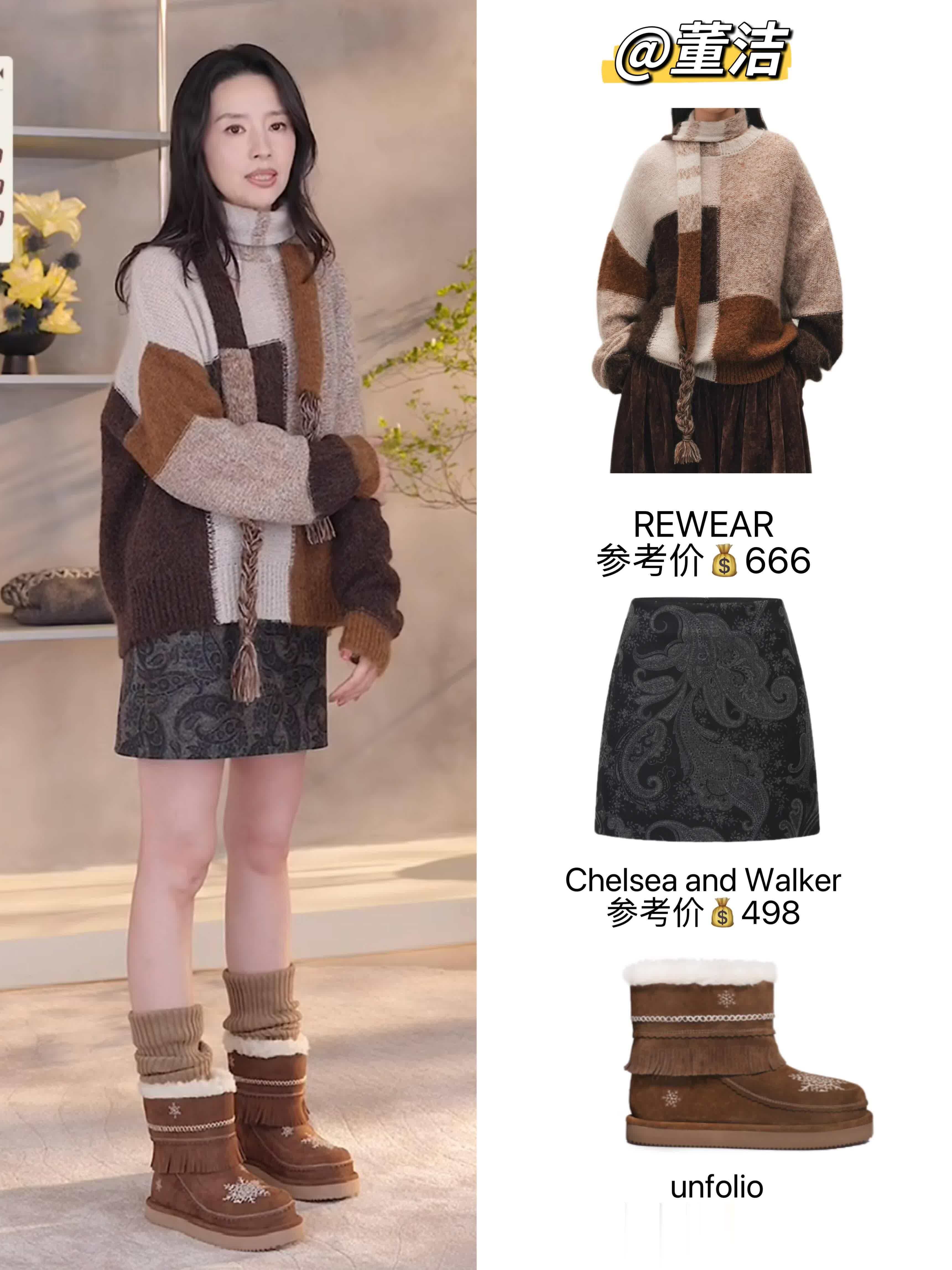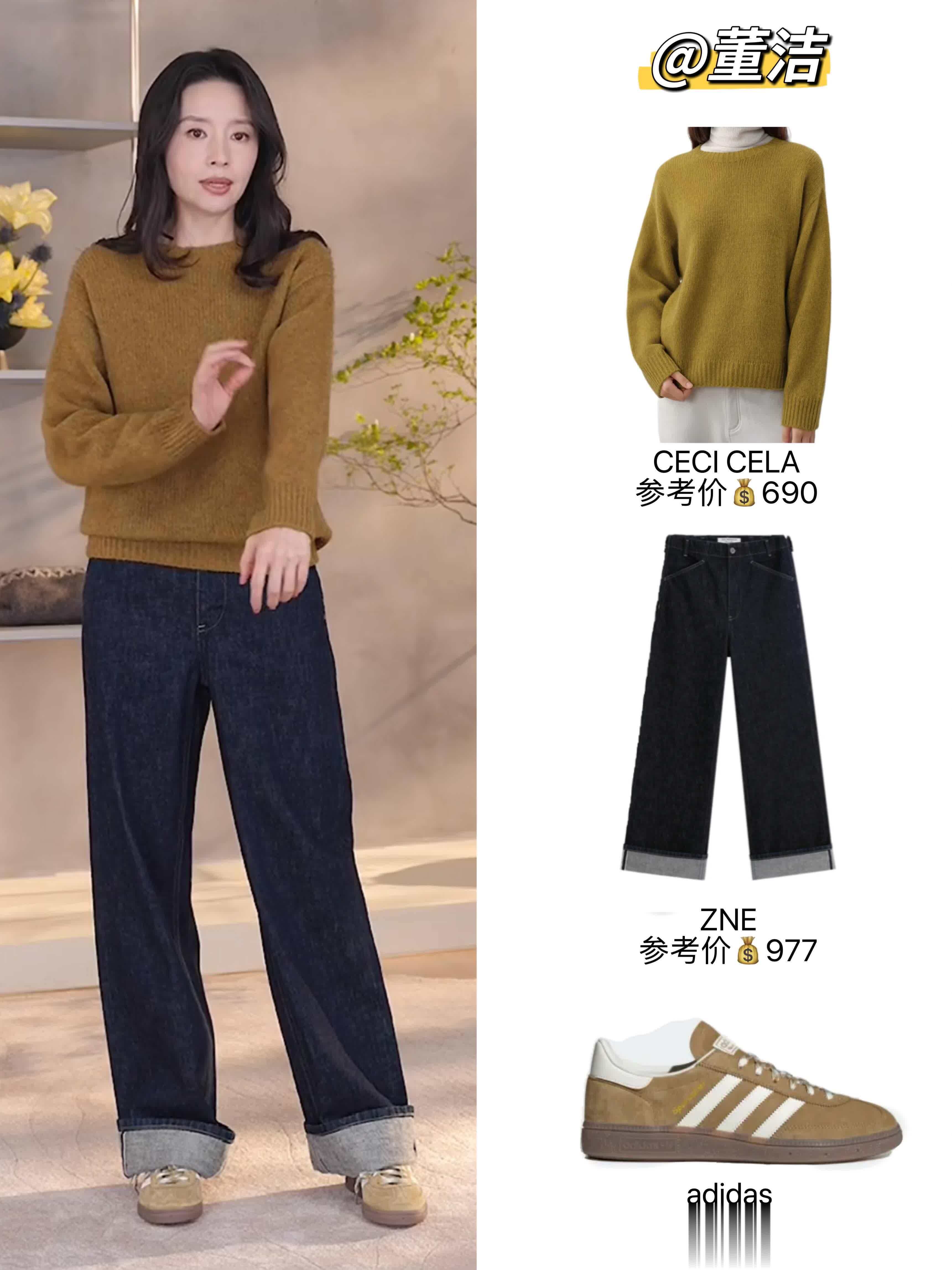她的穿搭从不追那些转瞬即逝的流行,反而把基础款穿出了花。一件简单的针织衫,她会选带点肌理感的面料,看着普通却比光滑款多了份质感;一条直筒裤,裤脚悄悄做了微喇设计,既藏住脚踝的肉肉,又比普通直筒多了点小心思。上次看她直播穿的深棕开衫,配米白内搭和同色系半裙,全身上下不超过三个颜色,却莫名让人觉得“高级得很克制”,这种“少即是多”的思路,才是能穿很久的关键——毕竟太花哨的款式,过了一季就容易显土,基础款反而像老朋友,越穿越有味道。